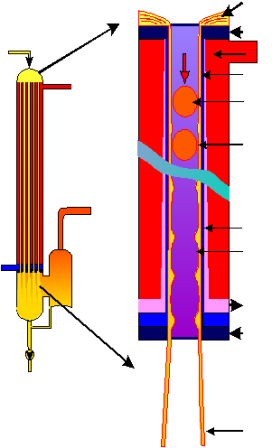 Steam is applied as a source of heat on the outside of the tubes. As boiling occurs, the film under gravity and accelerated by the produced vapour falls to the bottom of the tube, where the mixture of vapour and concentrate product enters the separation stage.
