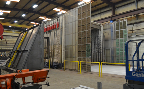 Shown here is one of three portable and collapsible paint booths installed by Alfa Laval ACE in 2015. The paint booths are moved into position on tracks built into the floor, allowing coolers to be painted in line without extra handling.