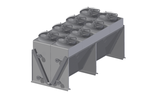 Eğimli bölümlere ve standartlaştırılmış yatay fan tertibatlarına sahip modüler V tipi soğutucu, motor/fan güç tüketiminin optimizasyonu sayesinde yer kaplamayı ve işletme maliyetlerini azaltır. Standart VFD motorlu fanlar, ünitedeki kontrol sistemine önceden kablolanmıştır. İsteğe bağlı hidrolik tahrikler de sunulmaktadır.